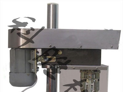 該機為臺式三只旋風刀式軋蓋機,臺面用不銹鋼板制成,整潔耐腐蝕易清掃,軋蓋刀頭系用優質鋼材加工而成,表面誶火處理,經久耐用。工作時,被軋蓋瓶不轉,均布 120°三只旋風刀旋轉軋蓋封口,刀柄設計為彈簧結構,三刀的距離可以微調,適應性強,軋蓋成品率高,馬達罩也選用不銹鋼罩 ,整機外型整潔,適用價值高,加工工藝精良,使用操作方便簡單,是、yiyuan、化驗室、制藥廠的理想生產設備。