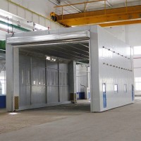 整體移動式噴漆房的設計目的,是為了滿足較大型工件打磨或噴漆的需要。一般情況下每套房體對應2-3個排風凈化工位,哪個工位上的工件需要噴漆時,房體則行走移動到那個工位,其他工位可以繼續打磨工作,待房體內的工件噴漆完畢后,再控制移動房體行走到打磨完畢的工件工位,如此設計可以實現大型工件的不間斷連續噴漆工作。房體為鋼結構構造,房體立柱下面設置有兩臺電動驅動行走機構,行走機構沿地面軌道行走。移動房體兩端設置有電動卷簾大門,房體行走時,大門升起,待到達位置時,大門降落關閉。大門與行走機構由電氣控制部分連鎖控制,大門完全升起后,房體才可移動行走。了解更多關于噴漆***格,歡迎與我們公司取得聯系,獲取方案及報價,微信/手機:13655437136