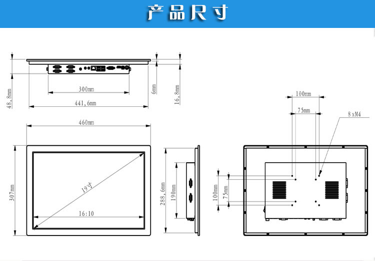19寸工業平板電腦,前面板采用鋁美合金材質,具有良好的散熱效果,機身設計美觀。