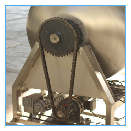 真空滾揉機工作原理是把調味的輔料和豬肉、羊肉、雞肉等物料一起放入真空滾揉機中立即進行抽真空,同時通過機器滿速運轉,利用物理沖擊原理,肉塊在滾筒內上下翻動,部分肉被其中的擋板帶到高處,然后自由落下,與低處的肉塊互相撞擊。由于旋轉是連續的,所以每塊肉都有自身翻轉、肉間互相揉擦和互相撞擊的機會。這樣,可使原來僵硬的肉塊軟化、肌肉組織松弛、腌漬液容易滲透和擴散、肉發色均勻、同時起到拌和作用。由于不斷的滾揉和相互擠壓,腌漬液被肉充分地吸收,增強肉的結合力及彈性,具有肺呼吸功能,從而提高產品的口感及斷面效果;可以增強保水性,提高出品率;可以改善產品的內部結構(食品加工機械廠家Tel:138*5448-1138)。